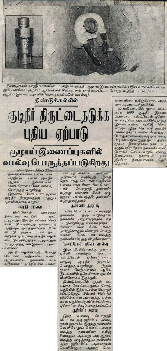 2. Illegal tapping of water by using electrical suction motor by the end users causes severe scarcity in the adjoining house service connections.